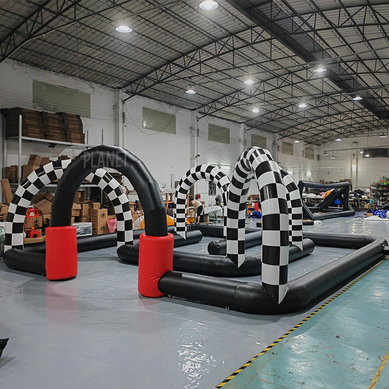 A pista de corrida de go-kart inflável é uma maneira portátil, divertida e emocionante de levar corridas de go-kart para qualquer local.Esta pista de corrida inflável pode ser montada rápida e facilmente., tornando-o perfeito para corridas de quintal, carnavais, feiras e outros eventos.